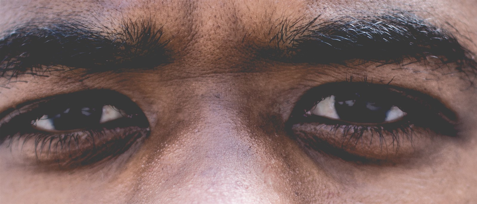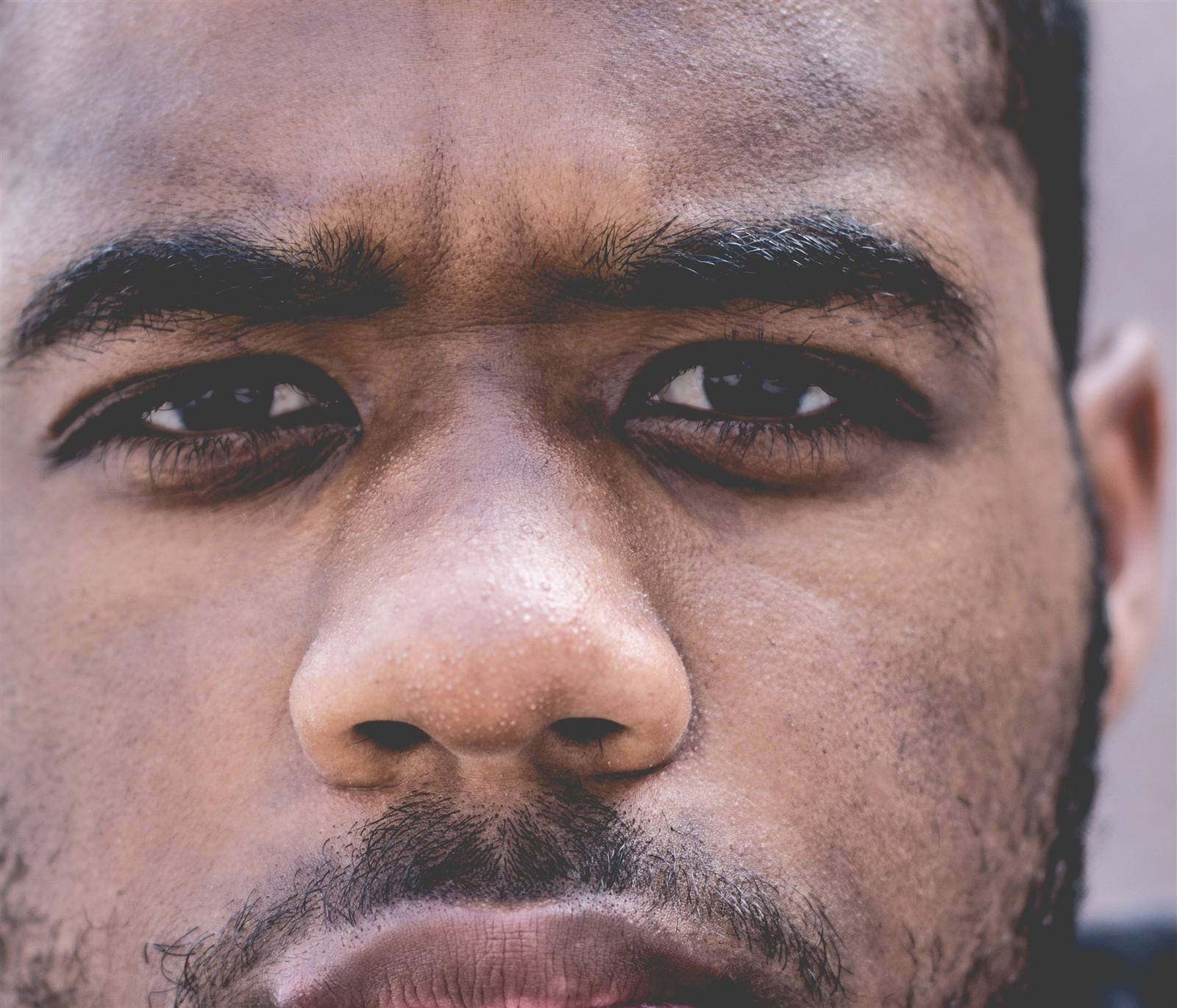 extreme close-up of the eyes, hyper-detailed skin texture - Real reference: Face portrait (Unsplash),