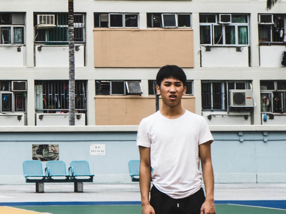subject isolated with strong negative space on the left - Real reference: Man standing in court (Unsplash),