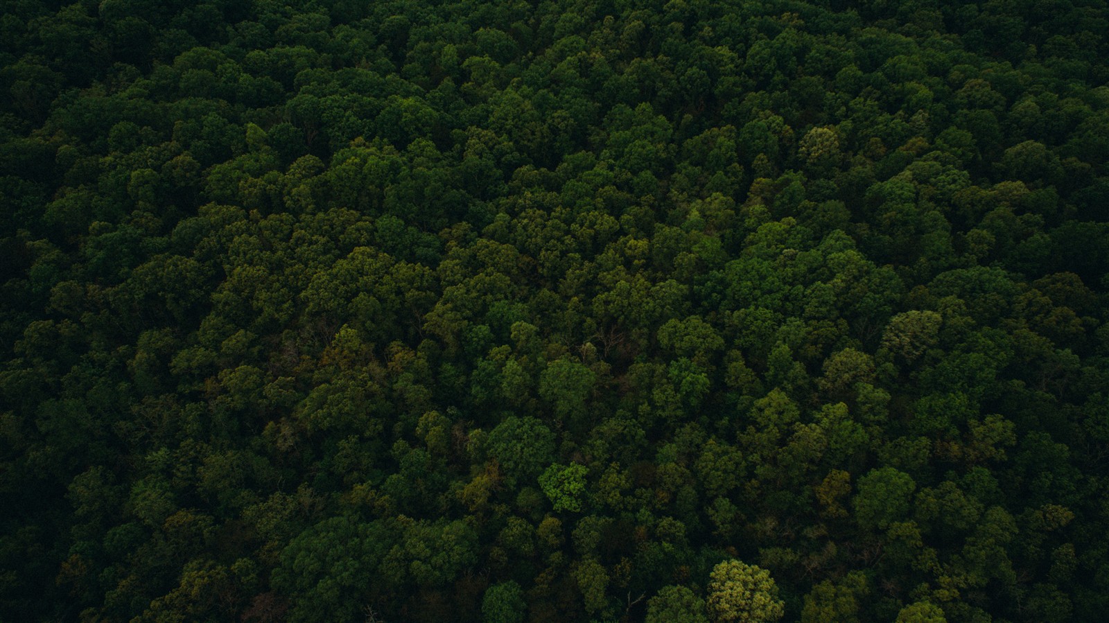 top-down shot of a dense forest canopy - Real reference: Bird’s-eye view of a forest (Unsplash),
